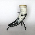 Schwarzes Trinkhorn, z.T. mit weißer Färbung. Ohne Trinkhornständer. Die Farbe der Trinkhörner kann von der Darstellung abweichen (Naturprodukt). Zum Trinkhorn 0,2 Liter verwenden Sie am besten den schmiedeeisernen Trinkhornständer (s.u.).