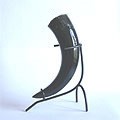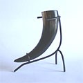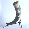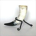 Praktischer Trinkhornständer aus gedrehtem Schmiedeeisen. Auch ideal für unterwegs. Sehr klein - passt in die Hosentasche. Geeignet für 0,2 - 0,4 Liter-Trinkhörner. Ohne Trinkhorn.